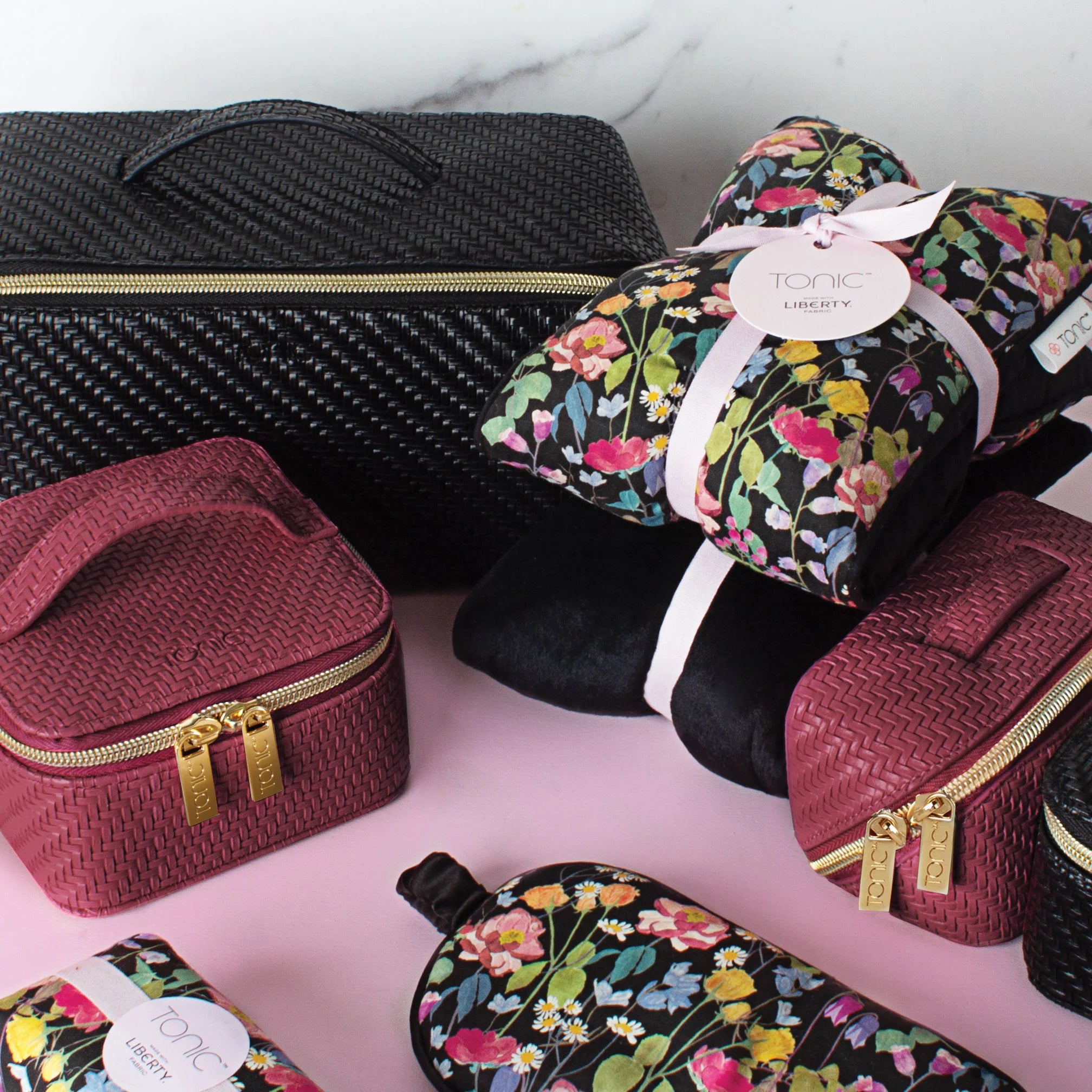 Organise in style with the Tonic Jewellery Cube in limited edition metallic gold. Crafted from beautiful herringbone textured vegan leather, the double gold zip closure opens to reveal the thoughtfully designed interior. The trademarked accordion pockets feature clear windows so you can always see your favourite items while the zip closures keep them secure and tangle free. Dedicated holders for earrings and rings make packing for travel effortless.