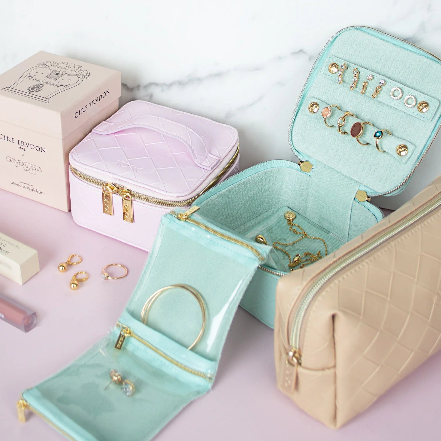 A registered design, our Jewellery Cubes feature an internal accordion-style set of 4 zipped pockets to safely store your pieces and keep them tangle and damage free. Each pocket features a clear EVA window, allowing you to quickly see where each piece is so you can accessorise your outfit with ease.