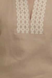 lace detailing and soft gathers add textural interest to a versatile silhouette.