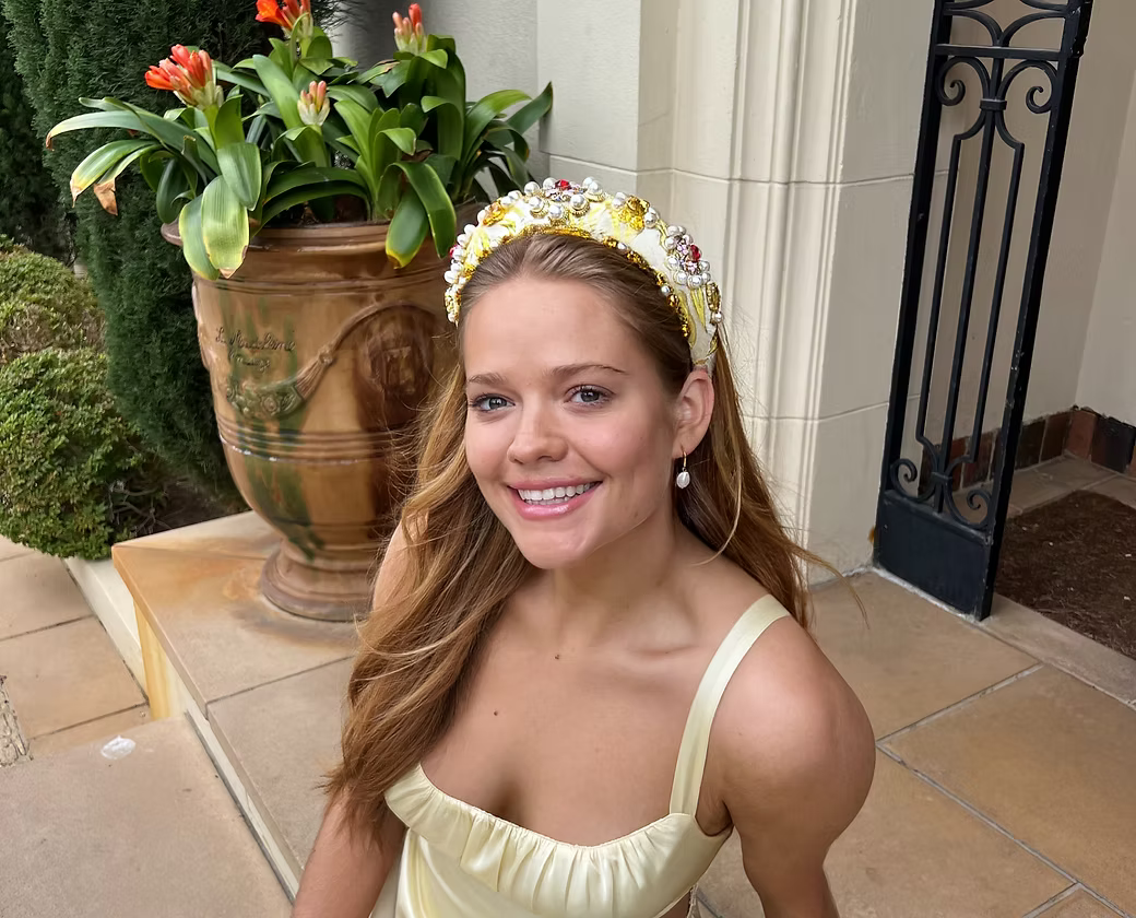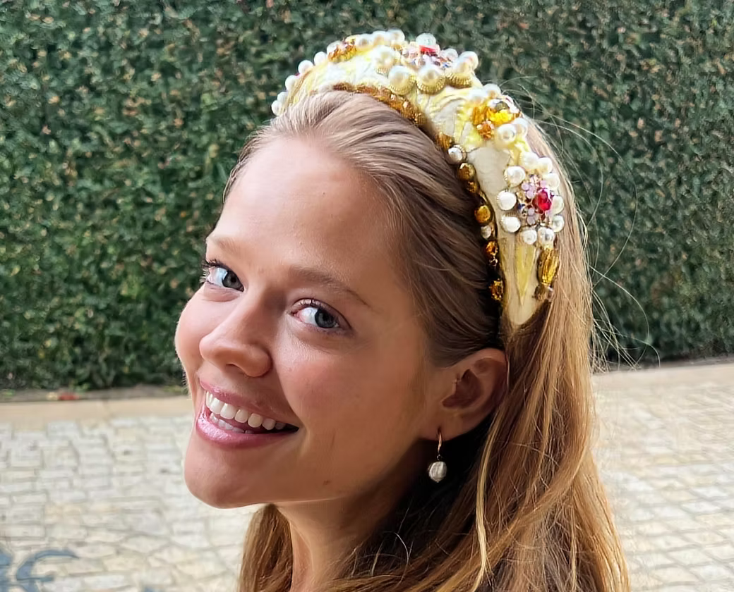 Anika is a jewel-encrusted masterpiece, blending vintage charm with bold glamour. Its golden crystals, ruby-red accents, and luminous pearls create an irresistible headpiece designed to captivate from every angle.