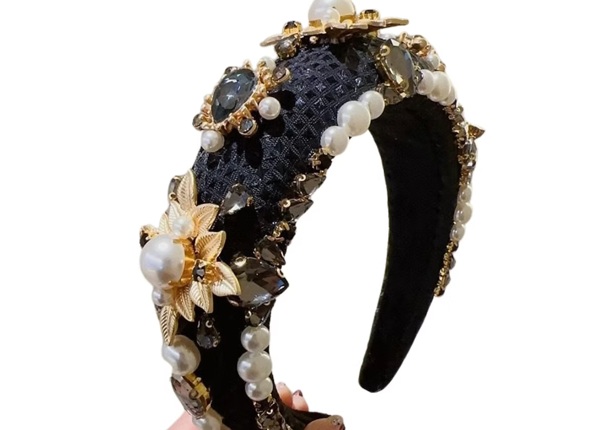 Turn Heads with our Verdell Headband in Black velvet with Stunning Emerald green gems.