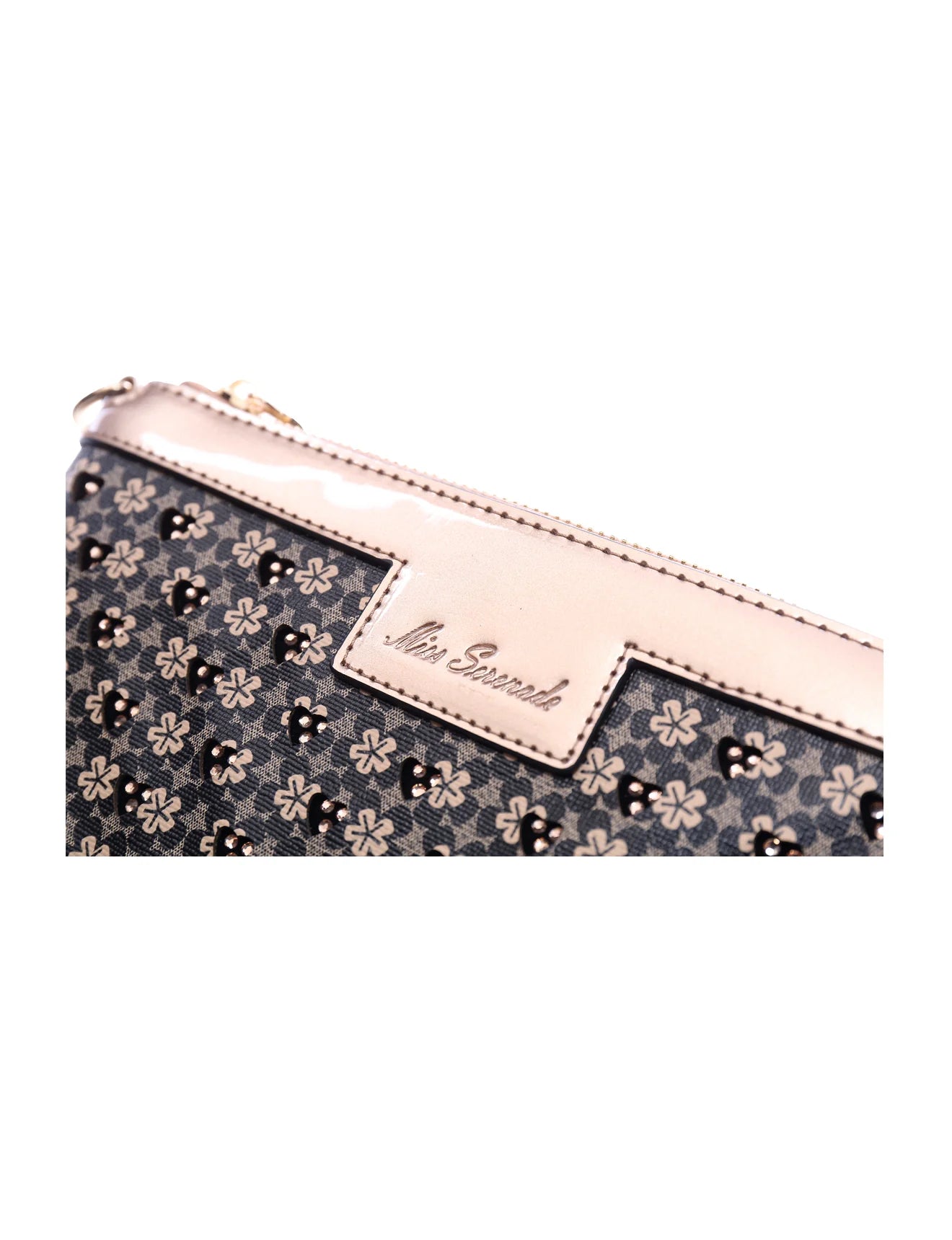 Vegan Leather in saffiano texture with laser cut and Diamante detailing. Rose Gold metallic trim