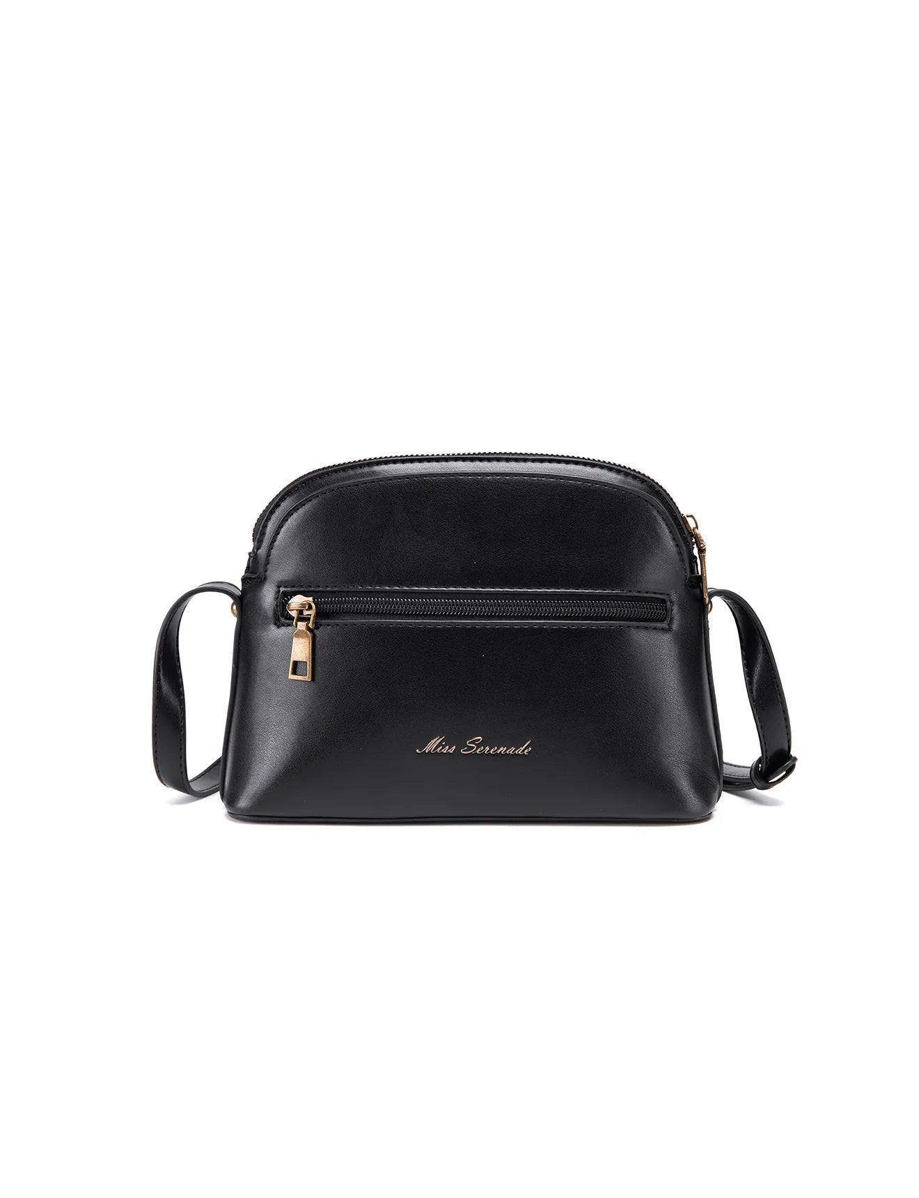 This Miss Serenade Lyla cross body bag is perfect for everyday. REYCYCLED Vegan material, featuring embroidery on the front, an external zip compartment on the back in addition to one interior zip compartment and one slip pocket. Lyla comes with an adjustable shoulder strap and antique gold toned fittings.