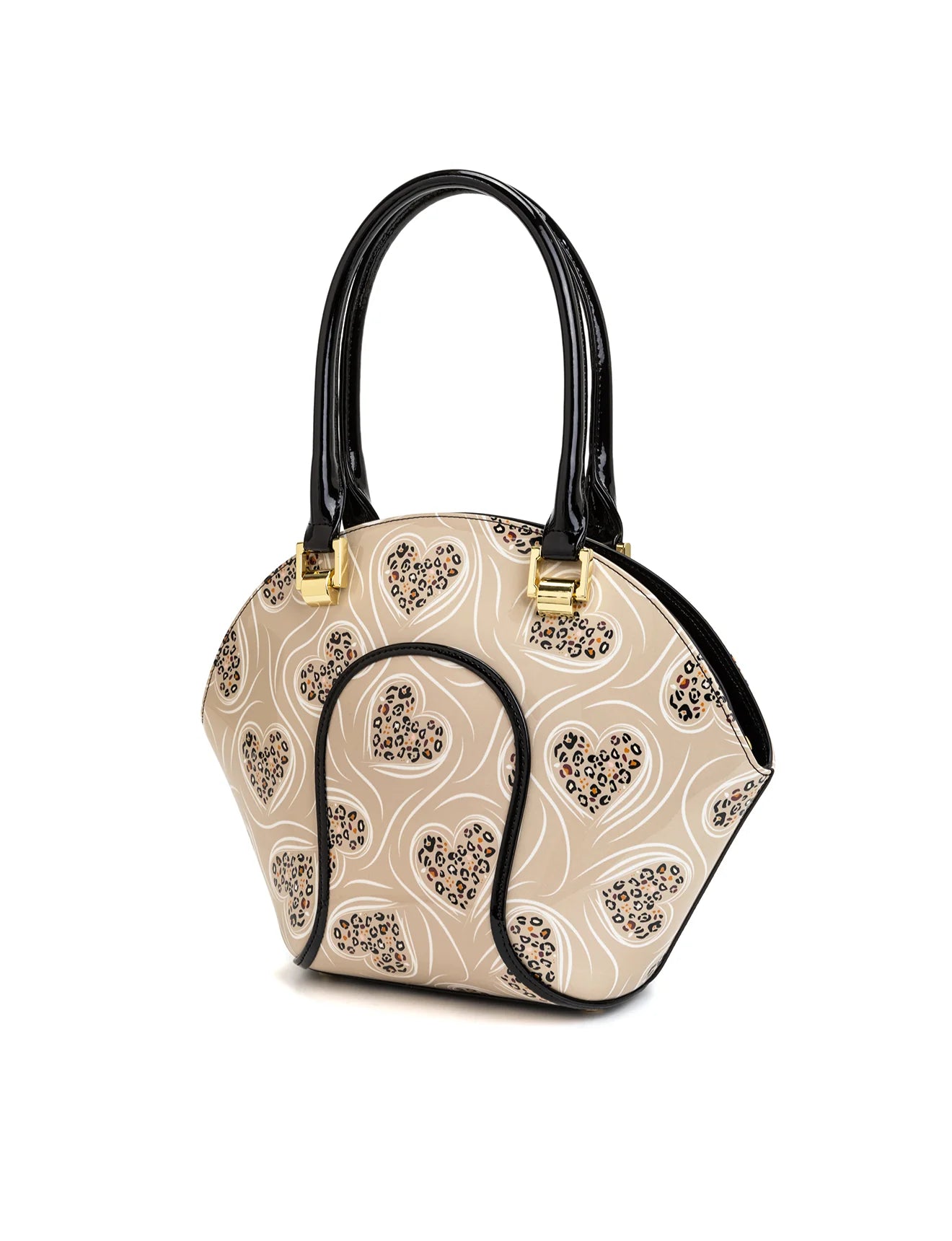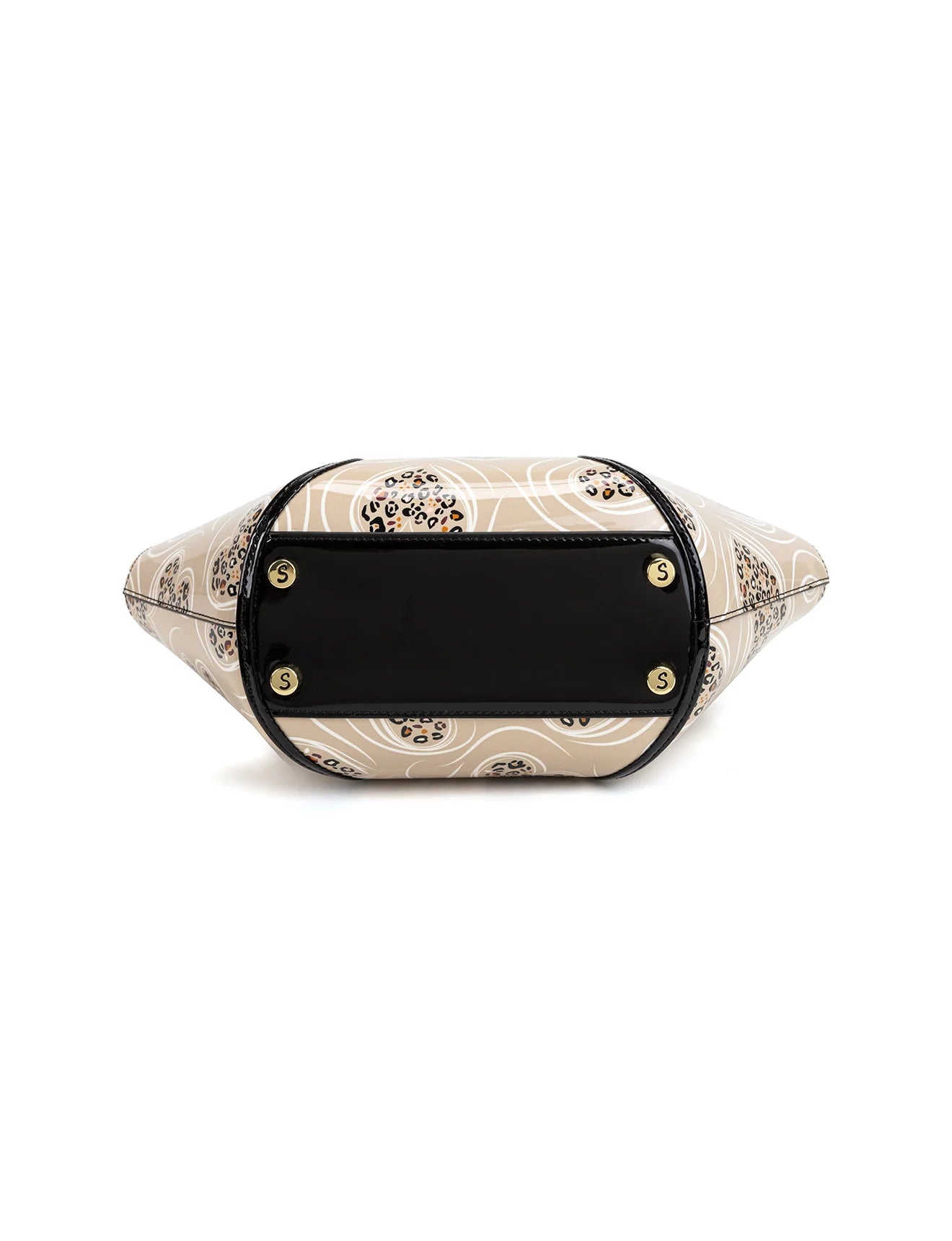 This stunning Serenade Beverly Hills Collection Aphrodite patent leather bowling bag makes a fashion statement. Crafted from premium leather, featuring one interior zippered compartment and 2 interior slip pockets ideal for your mobile phone and smaller belongings. Aurora's beautiful curved lines are sure to attract attention.