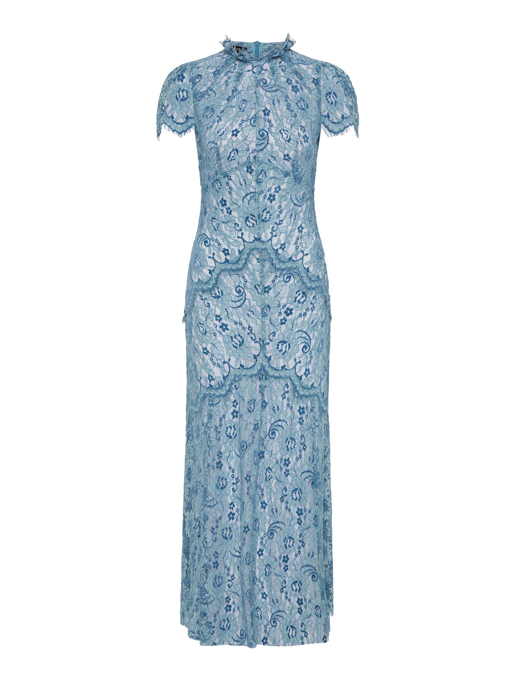 - Soft high neckline with lace detailing
