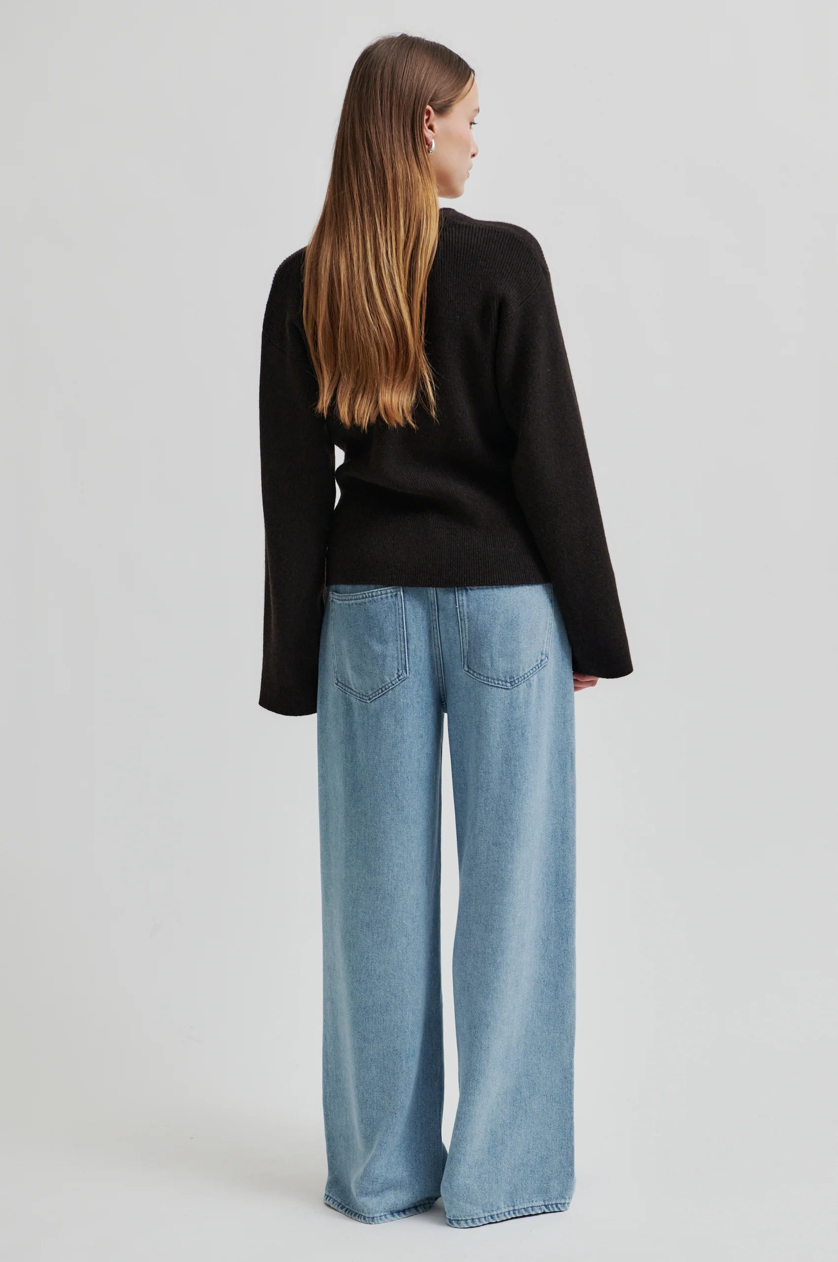 Second Female double-breasted cardigan. The cardigan is made in soft ribbed wool. Featuring a V-neckline with double-breasted fastening and extra-wide, long sleeves. Regular fit.