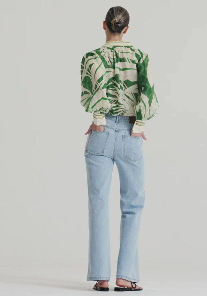 Once Was - Calantha Viscose Dobby Ruched Sleeve Shirt in Azure Mosaic